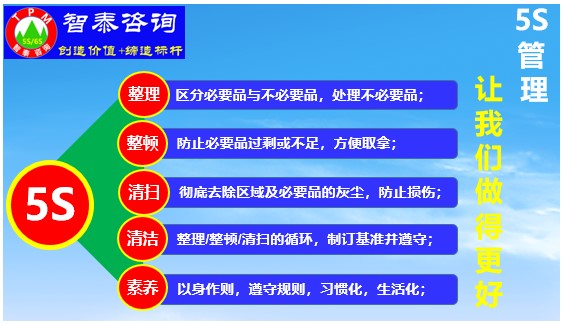 您的企业车间现场是否干净、整洁、明亮、规范、安全、高效的生产现场吗?您的企业产品质量是不是行业最高,您的企业做到行业第一名了吗?如果还没有,请子道联系我们。智泰咨询公司给企业提供专业的5S管理,6S管理,TPM精益管理落地辅导与培训服务;给企业提供免费上门调研服务和编制5S,6S管理,TPM管理定制化落地辅导方案。联系电话/微信:137 5118 4775